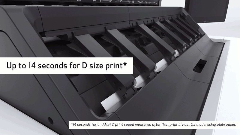 By inkjet standards, the TZ 30000 is a fast printer, boasting up to 4 D-size (24x36) sheets per minute. In other words, the print speed is about 14 seconds per page. The rugged design allows you to easily print 244 D-size sheets in an hour.